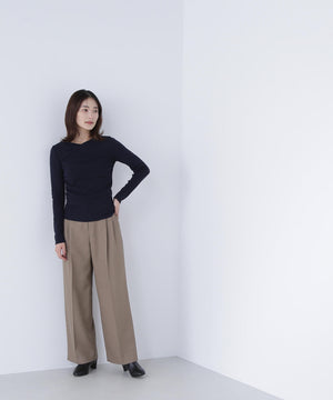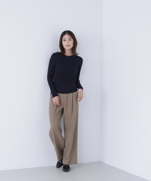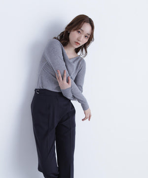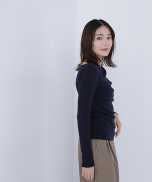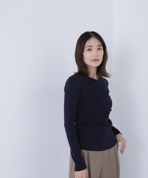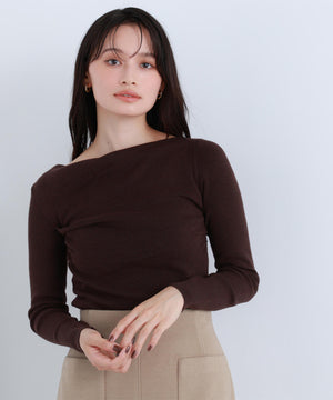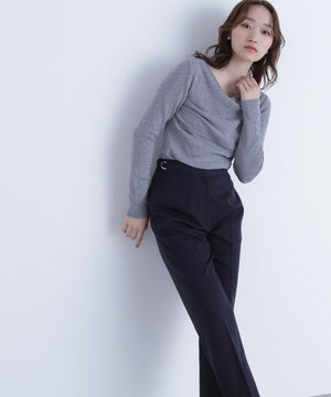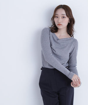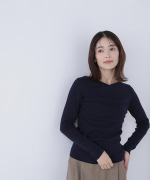 体に沿うコンパクトなシルエットで上品さを引き立てるニット。ドレープネックがデコルテまわりに女性らしい表情をプラスします。スカートもパンツも合わせやすく、オフィスからデイリーカジュアルまで幅広いシーンに着回せます。