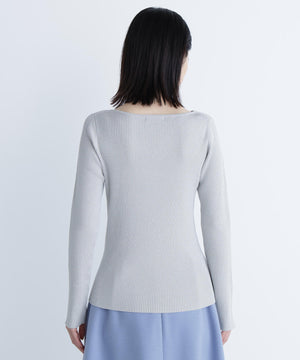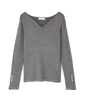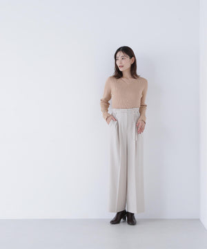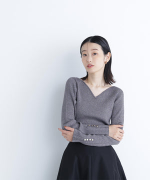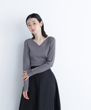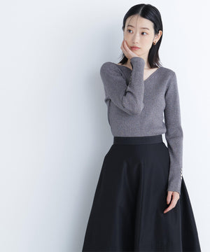 上品なラメ糸入りリブニット素材で、繊細な光沢感があります。柔らかく伸縮性がある素材です。