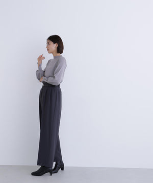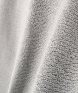 キレイな表面感と温もりのあるタッチの糸を使用。袖はプリーツ編みです。