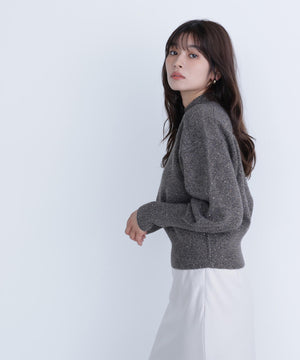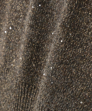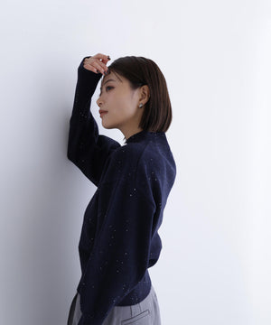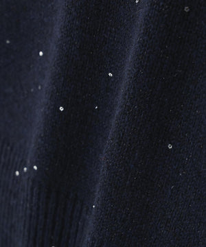 華奢なお花モチーフのスパンコールを編み込んだ、暖かみのあるニットを使用しています。