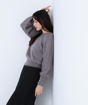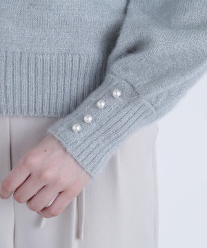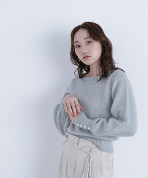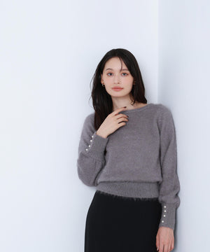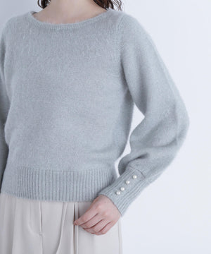 パールボタンヘアリーニット