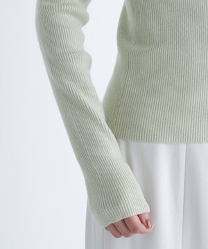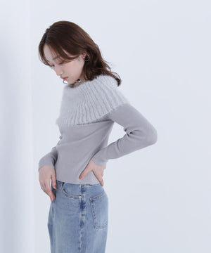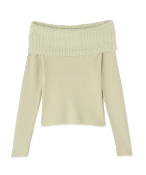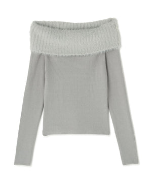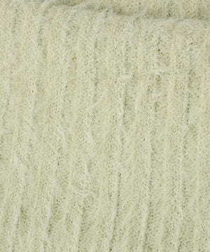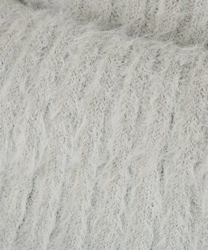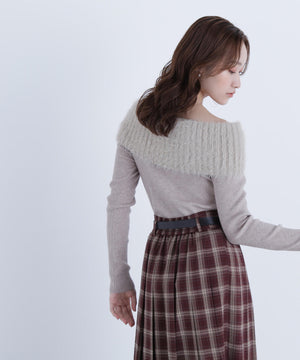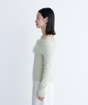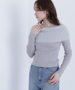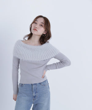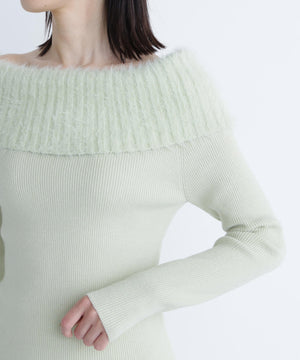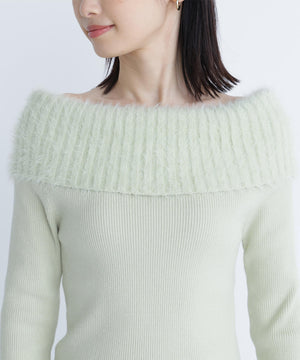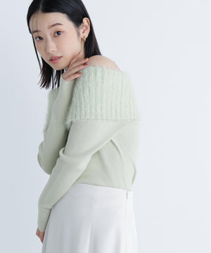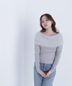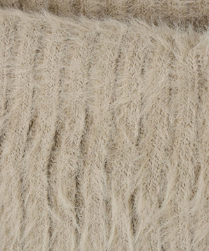 ふんわり柔らかなシャギーニット素材を使用。身頃はリブ編みで程よいフィット感と暖かみがあります。