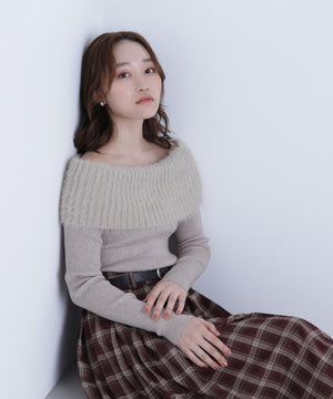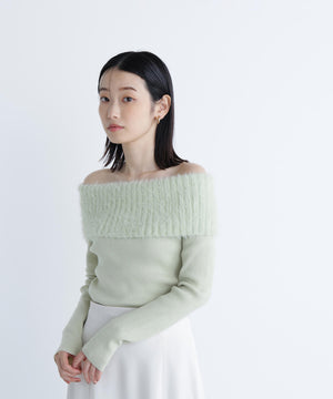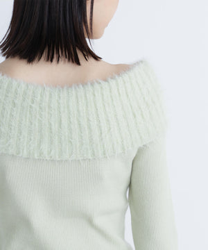 ふんわりと柔らかなニットシャギー素材が女性らしさを引き立てるオフショルニット。肩のラインを美しく見せるオフショルデザインが抜け感をプラス。身頃はリブ編みで程よくフィットします。暖かみのある素材感で秋冬のスタイリングにぴったり。デイリーからお出かけまで、上品さとフェミニンさを両立しながら着ていただけます。