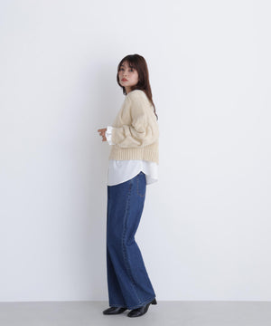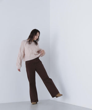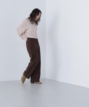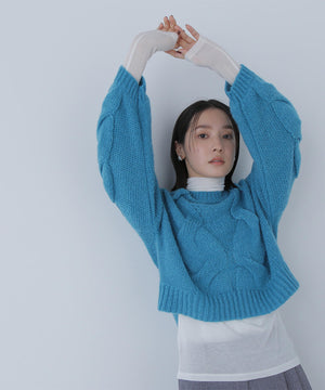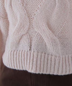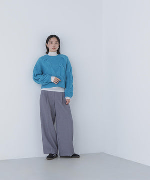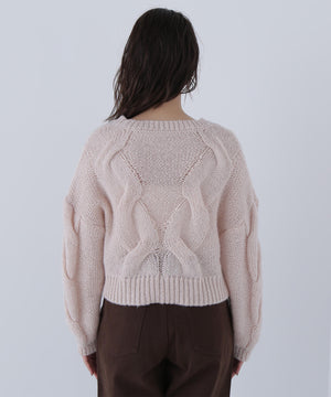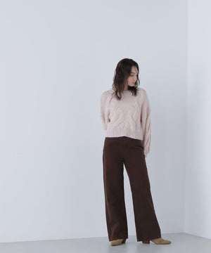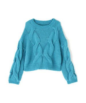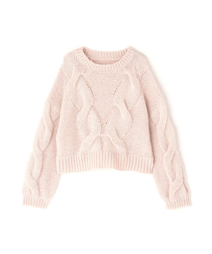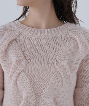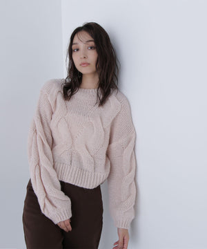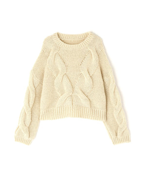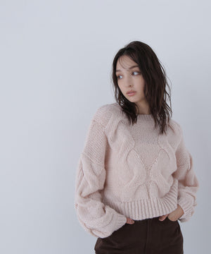 存在感のあるビッグケーブル柄が目を引くニット。シーズンムードを高めるざっくりとした表情が魅力です。コンパクトな丈感が着こなしのバランスを整えてくれるポイント。クロップド丈なのでハイウエストボトムスと相性バツグンです。