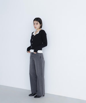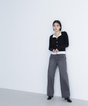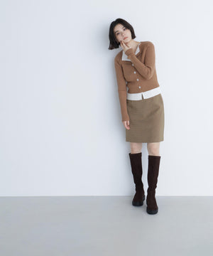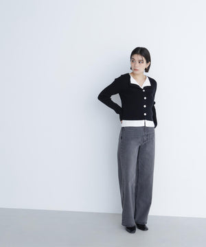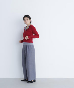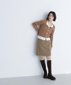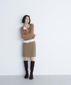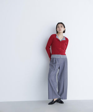 裾やトレンドのスキッパー襟をレイヤード風デザインにしたニットプルオーバー。少し大きめのフロントボタンがアクセントになっています。ニットをレイヤードしたような配色デザインが、コーディネートに奥行きをプラス。パンツスタイルでクールに、スカートを合わせると洗練された大人フェミニンが叶います。