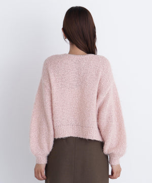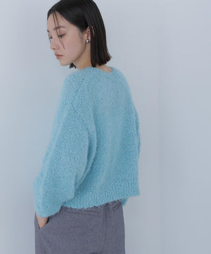 エアリーなシャギーとネップヤーンを撚糸した意匠感のある編地です。