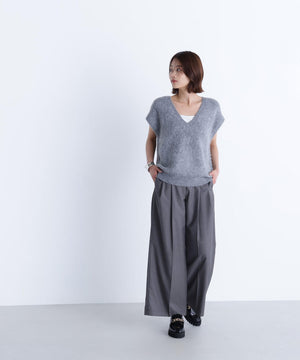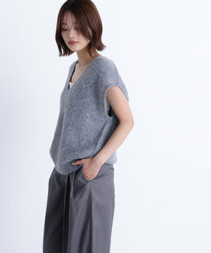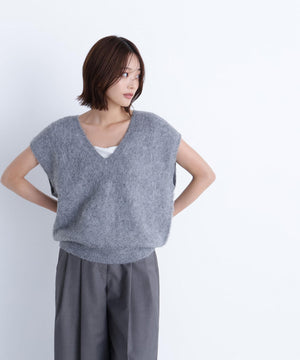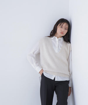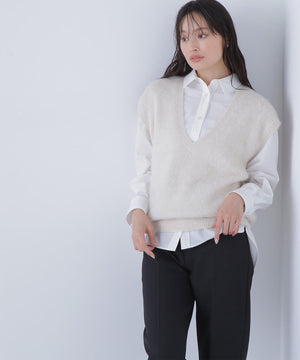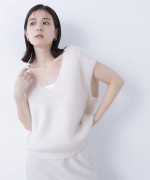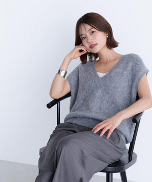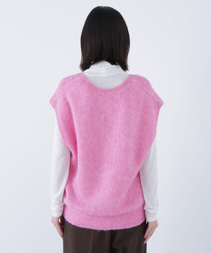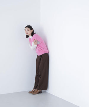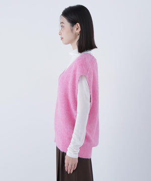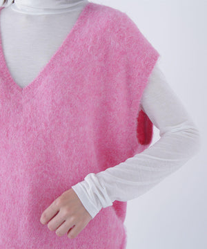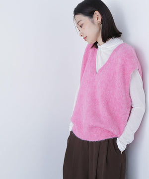 深いVネックデザインとオーバーサイズが洒落見えするニットベスト。起毛素材がこなれた印象に見せてくれます。キャミソールやタンクトップを合わせ、秋先取りスタイルに。インナーを長袖に変えると長く着ていただけます。キャッチーなピンクはおすすめカラーです。