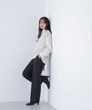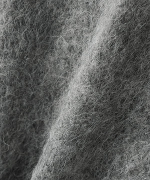 編み上げた後に起毛させたニットを使用。ややメランジ感の出る糸で着映えしつつ甘くない印象です。