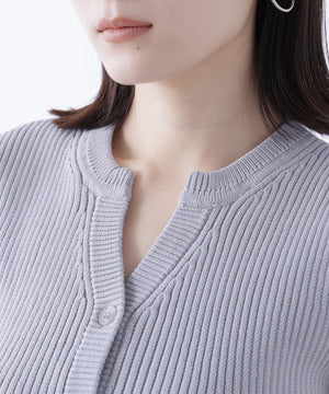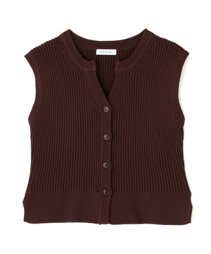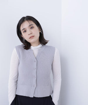 裾にペプラムフリルをドッキングした着回し力が高いニットベスト。ペプラムトップスとしても、裾の内側についている釦でペプラムフリルを取り外すと、ショート丈のニットベストとしても着こなせます。抜け感のあるスキッパーネックに同色のスコッチ釦がポイント。汗ばむ時期は1枚着のプルオーバーにも、初秋はシアーインナーやコンパクトニットとレイヤードもできるため、ロングシーズン着ていただけます。