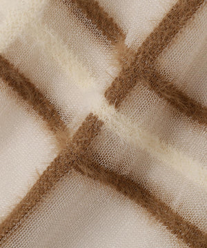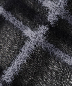 身頃はハイゲージ天竺、袖はシアー地にシャギーのチェック柄を使用。