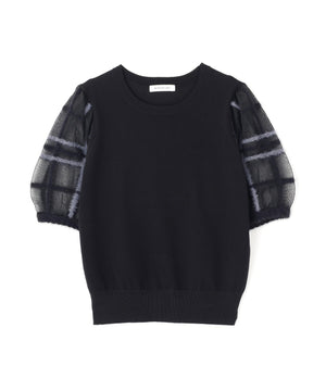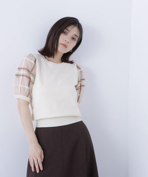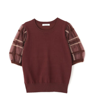 シアーチェックスリーブニット