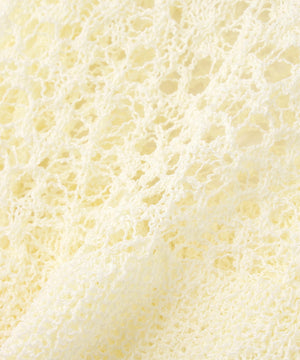 くるくるとした表情のあるブークレーヤーンでレース柄に編み立てています。カジュアルなタッチの素材感です。