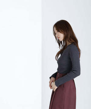 繊細なラメ糸を使った程よい肉間のリブニットですl。