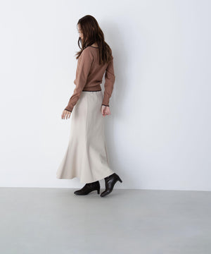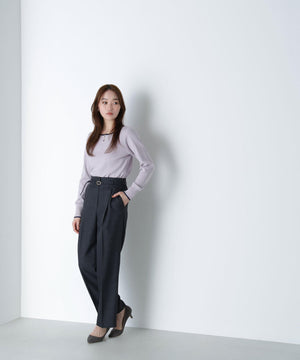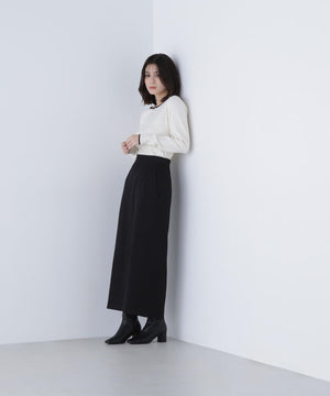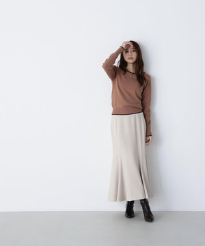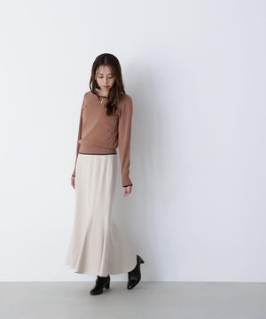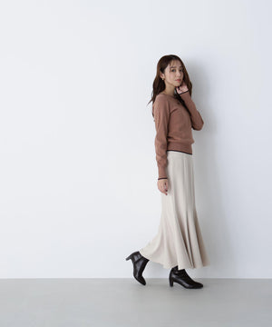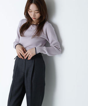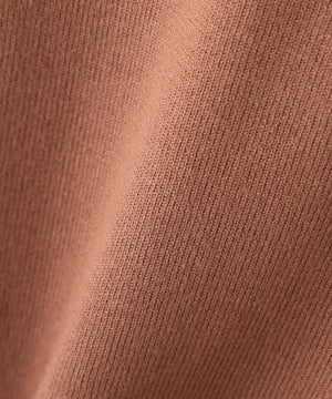 さらっとした肌触りのキレイな目面の糸を使用。総針で編み立てているので、体のラインを拾いにくい肉感です。