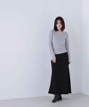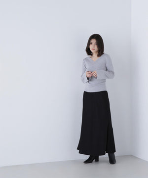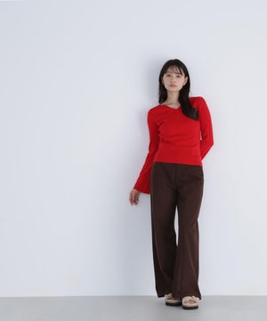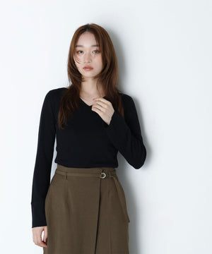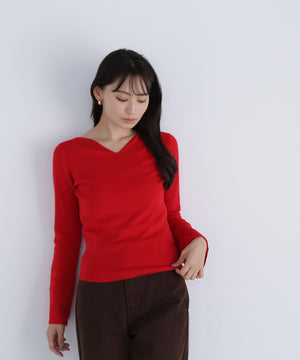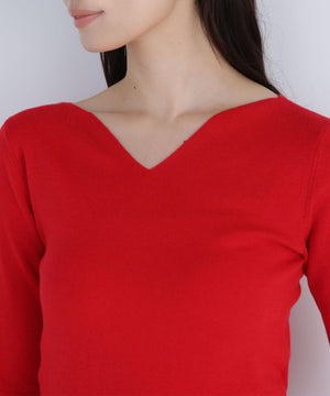 やさしいハートネックラインで女性らしい抜け感と涼しげな印象を叶えるニット。袖口はフレアスリーブデザインです。身頃はキャミワンピースなどのインナーにも使いやすいコンパクトなシルエット。ONにもOFFスタイルにも着回せるデザインです。