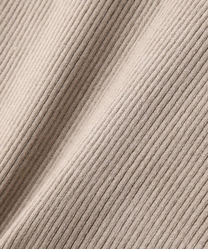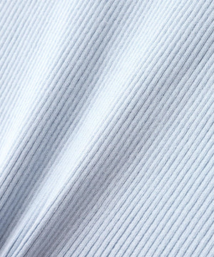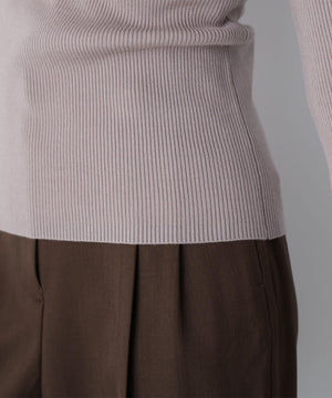 柔らかいタッチの糸を使用。身頃はリブ編みですっきりと、襟ぐりと袖口は同色のシャギーの糸を引き揃えています。