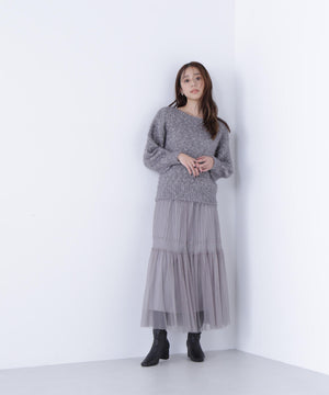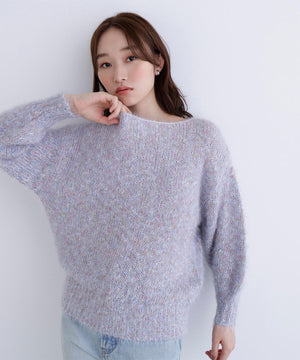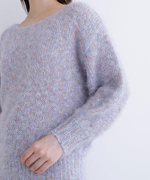 デコルテをキレイに見せるネックラインが女性らしい印象のニット。ミックスカラーや風合いのある糸を使用したニットは肌触りも良く、キャッチーな編地が映えるデザインです。ルーズなサイズ感なのでコーディネートに抜け感を演出。グレーMIX、ベージュMIX、ブルーMIXを揃えた3色展開です。