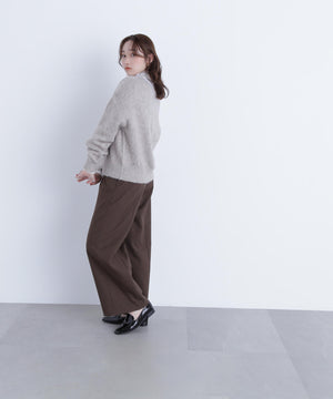編み上げた後に起毛させたニットを使用。ややメランジ感の出る糸で着映えしつつ甘くない印象です。