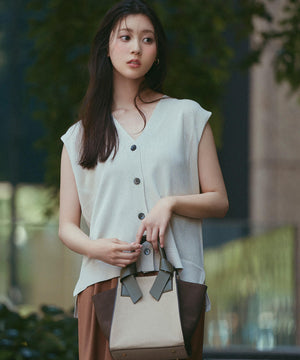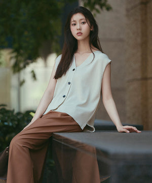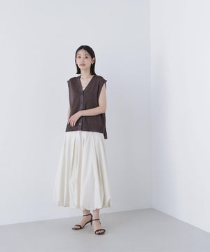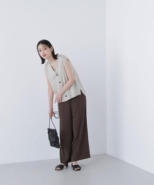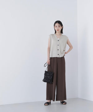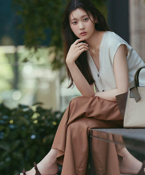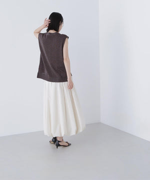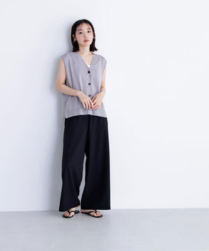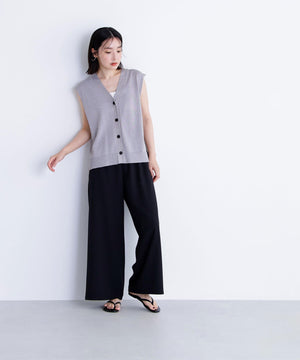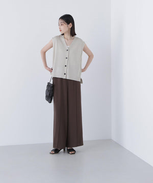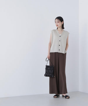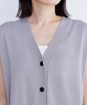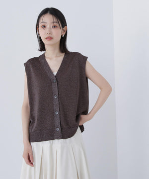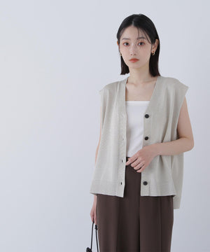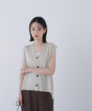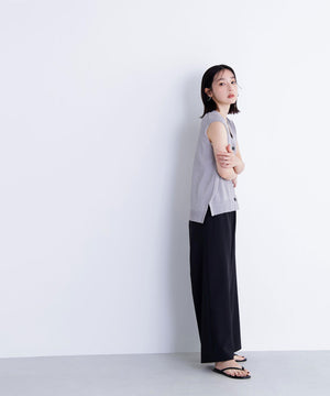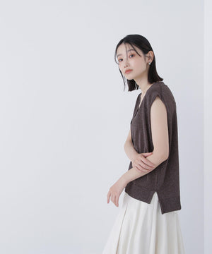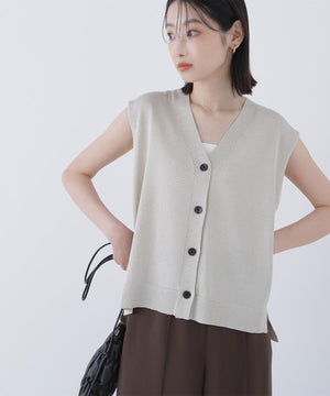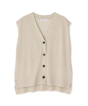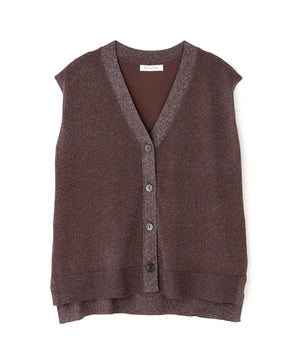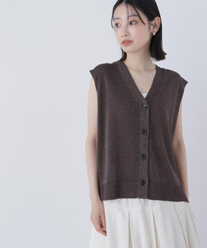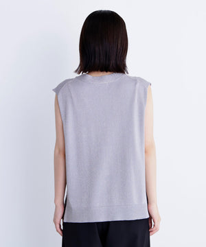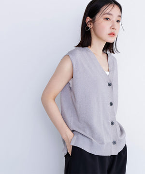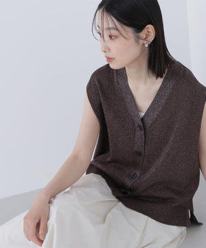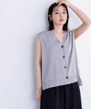 光沢糸を引き揃えてシンプルながらも華やかに仕上げたニットベスト。肌離れするシルエットなのでさらっと着ていただけます。襟はVネックで抜け感を出し、裾サイドはスリットが施されてアウトスタイルも様になるデザイン。シンプルな形なのでボトムスを選ばず着回せます。