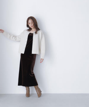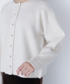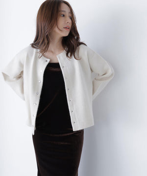 肌触りが良く上品な起毛感が特徴となるFOXブレンドのニットジャケット。つやっとした多釦をアクセントに、どんなアイテムにも合わせやすいややボクシーなサイズ感です。スナップ釦を使用しているため開閉がラクにできます。キャッチーで今年らしい秋カラーもおすすめ。サイドポケットが付いている便利なデザインです。秋のはじまりから長く着ていただけます。