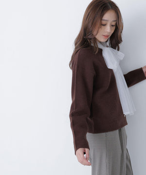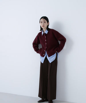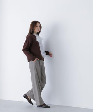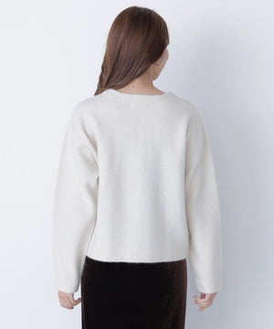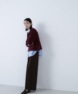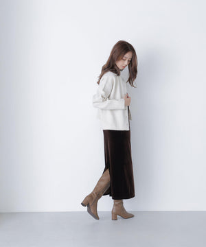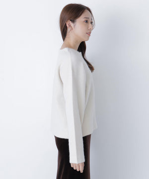 FOXブレンドの肌触りが良く上品な起毛感のニット素材を使用。裏側はポリエステル糸を使用することで肉感がでてフォルムもキレイに決まります。