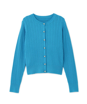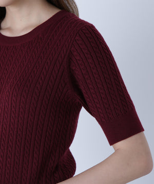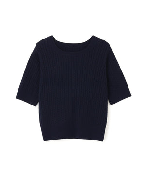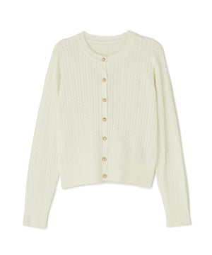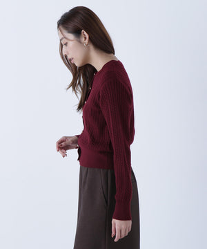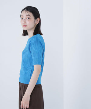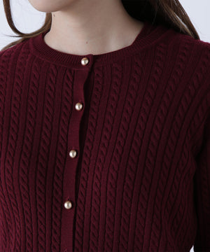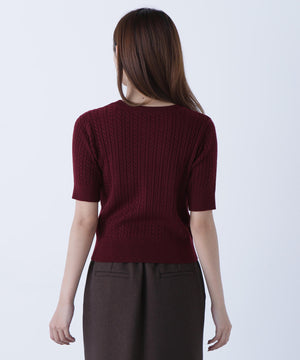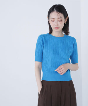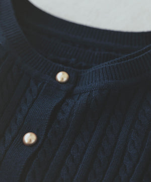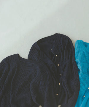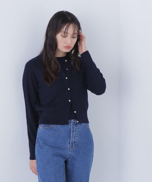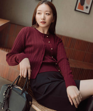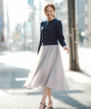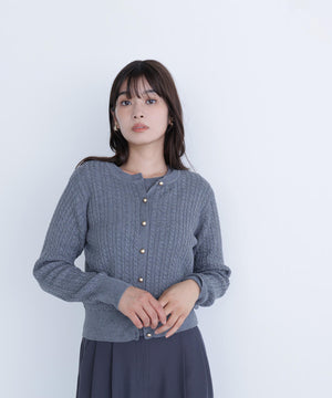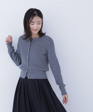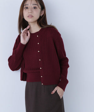 ONにもOFFスタイルにもそれぞれ別々でロングシーズン活躍できるアンサンブル。少しふくらみのある半袖ニットと、カーディガンのゴールドカラー釦が女性らしいポイントです。キレイめボトムスにもデニムなどのカジュアルなボトムスにも合わせやすいデザインです。