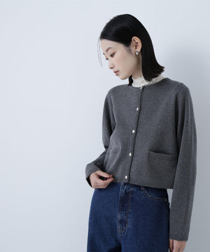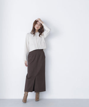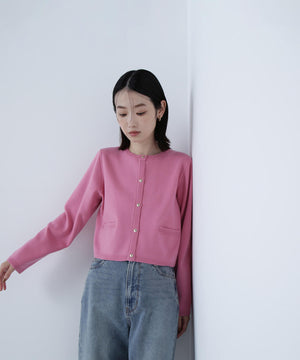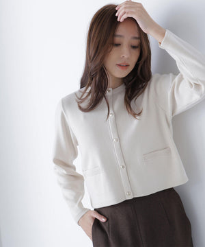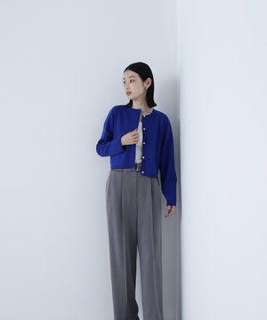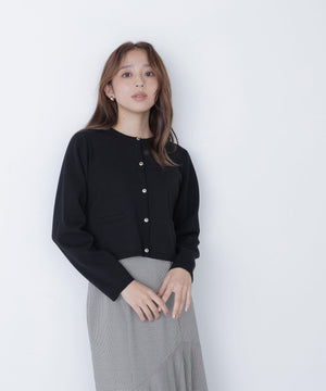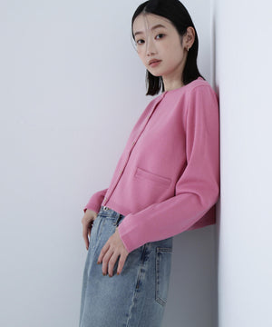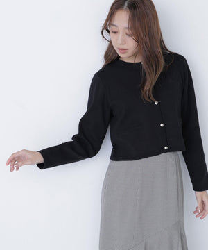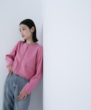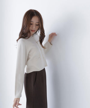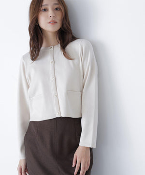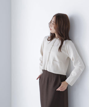 秋らしいカラーで季節を先取りできるカーディガン。シルクを含んだキレイ見えする素材を使用しています。釦やタック編みによるアクセントを効かせたデザインが品の良いポイント。ポケットの袋布にはスレキを使い、重いモノを入れても伸びにくい素材を使用しています。コンパクトな丈感なのでボトムスを選ばず、スカートでもパンツでも着ていただけます。