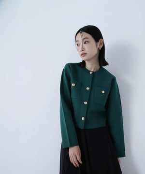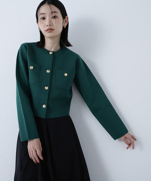 【横浜ジョイナス・mix.tokyo 限定カラー:ダークグリーン】エンブレムボタンニットジャケット