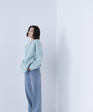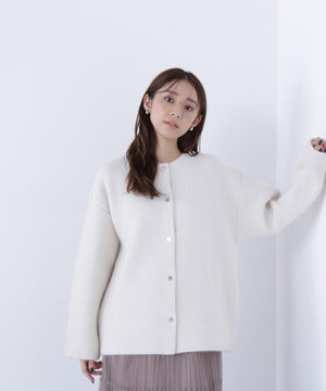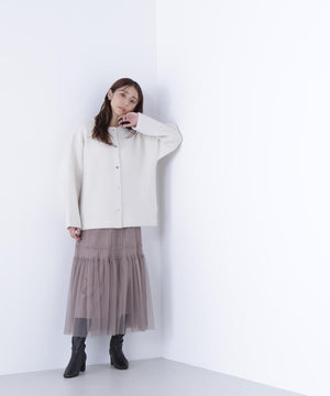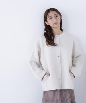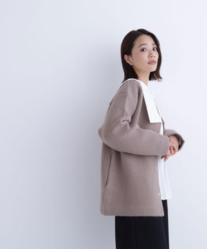 FOXを含んだ糸を使用し、ふわっとした暖かみのある素材感。接結編みでふくらみとやわらさが特徴です。
