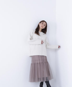 (表側)ナイロン 34% ポリエステル 30% 羊毛 15% 毛(フォックス) 13% アンゴラ 8%(接結糸)ポリエステル 100%(裏側)ポリエステル 100%