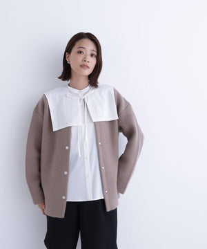 NBB毎年人気のFOX接結コーディガンを今年らしくアップデート!袖をやや太くすることで、中に着るアイテムの幅を広げたデザインです。羽織りやすいゆとりのあるサイズ感はそのままに、前立てはアクセントになるシルバーカラーのドットボタンを合わせたり、グログランテープも付けてポイントをプラス。柔らかく軽い風合いなので、季節の変わり目に一枚あると便利なアイテムです。