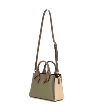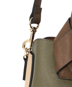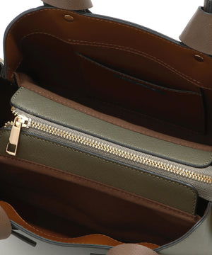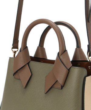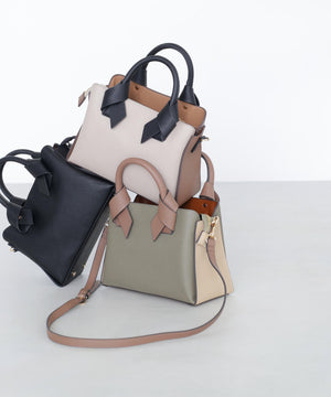 きちんと感のある型押しフェイクレザーを使用した、ボクシーでリボンディテールがフェミニンなトートバッグです。中は3層に分かれているので使い勝手が良く、マチのある中央部分にはお弁当やペットボトル、折り畳み傘などがすっぽりと収まります。さりげなく効いた配色の裏地がポイント。ショルダーストラップが付属しているので、クロスボディ持ちも出来ます。