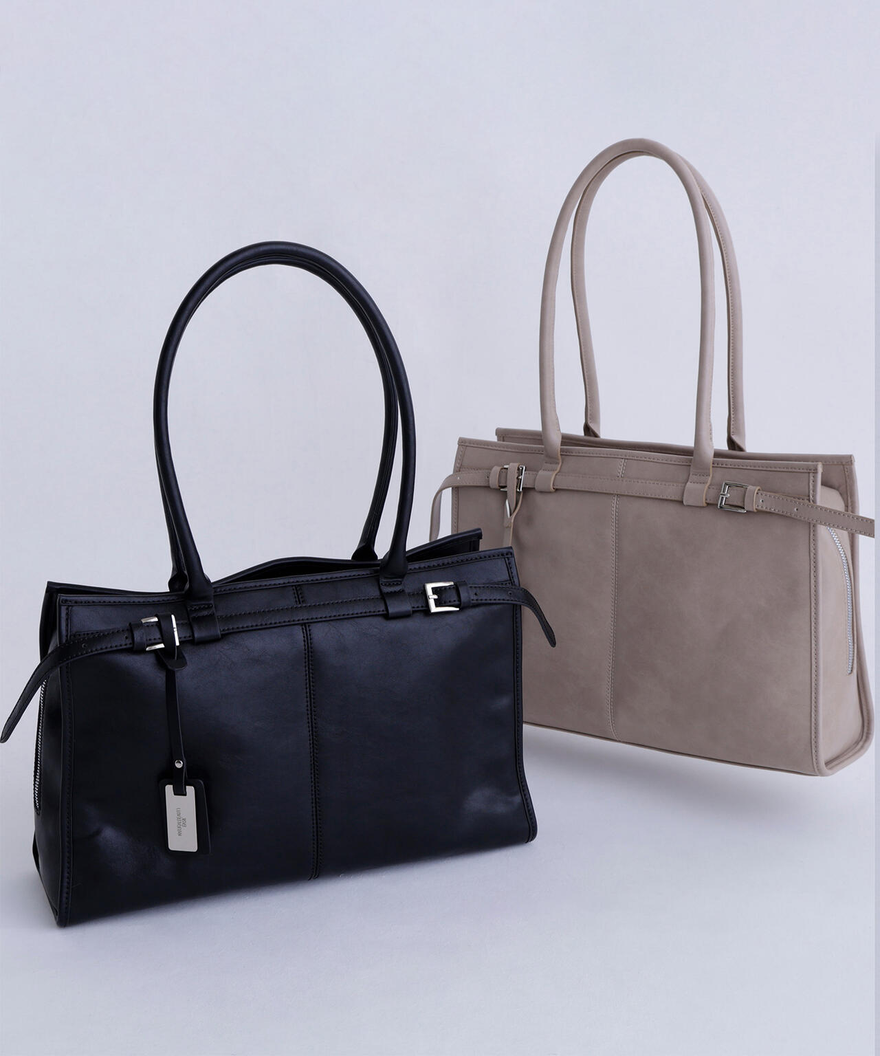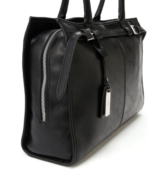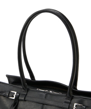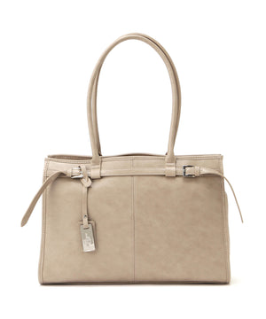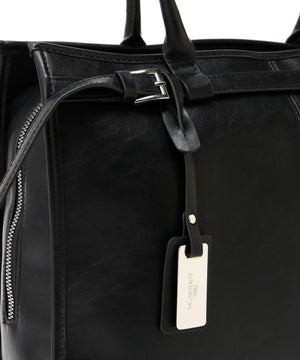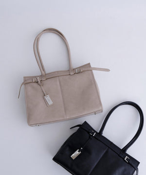 ヴィンテージ感漂うフェイクレザーを使用した、A4ファイルやノートパソコンが収納可能なトートバッグ。口元はラウンドファスナーでがばっと開くので、中に収納しているモノが把握しやすくなっています。ライナーにはノートパソコンが入る、パッド付きポケットが内蔵されているため、持ち運びにも便利でお仕事シーンにも安心。また、サイドファスナーを閉じた状態でもスマートフォンや鍵、ちょっとしたモノをさっと取り出せるポケットが付いているなど、細部まで拘ったデザインです。