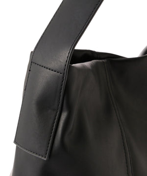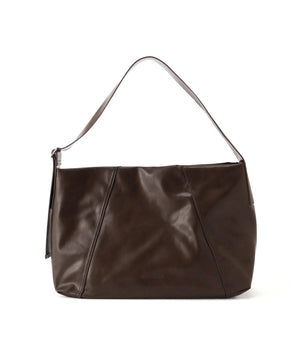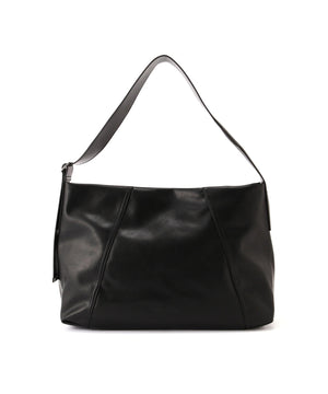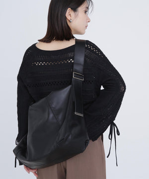 トレンドのヴィンテージ風フェイクレザーをふんだんに使用したボリュームのあるワンショルダーバッグです。ショルダーベルトは長さ調節可能。くったりと落ち感のある素材なので体なじみがよく、大きさを感じにくいデザインです。ノートパソコンやA4書類も収納できるサイズ感に、リップやワイヤレスイヤホンなどの小物が入る、マイクロポケットを付けた便利なディテールも魅力です。