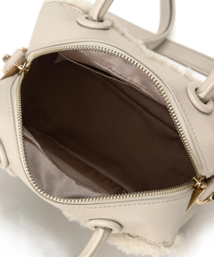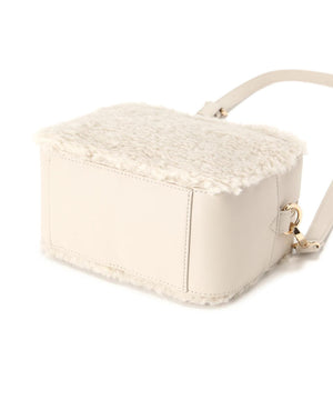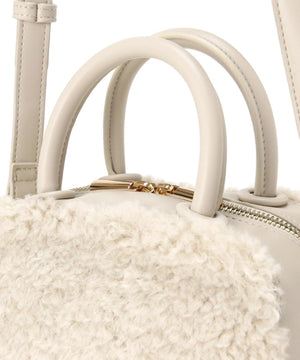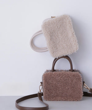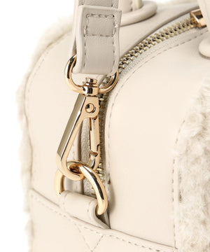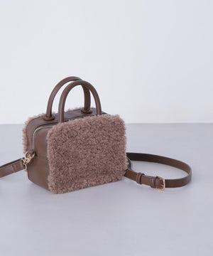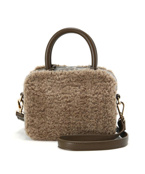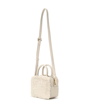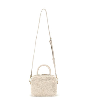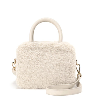 くるくるカールしたフェイクファーがポイントのボックス型ハンドルバッグ。ぐるりとファスナー開閉ができ、中身をカバーします。付属のショルダーでクロスボディ持ちも出来ます。