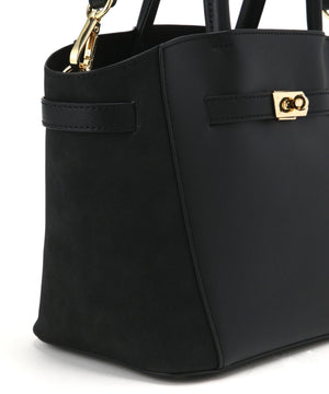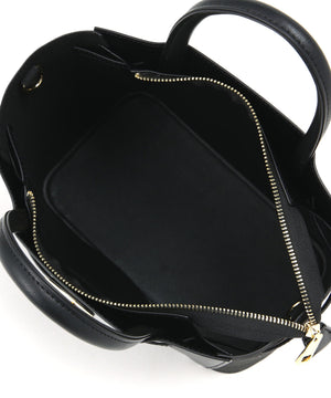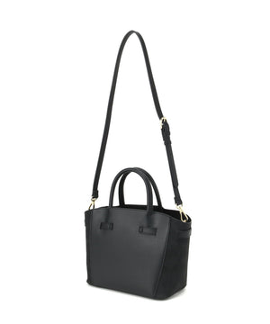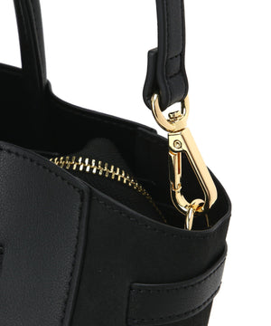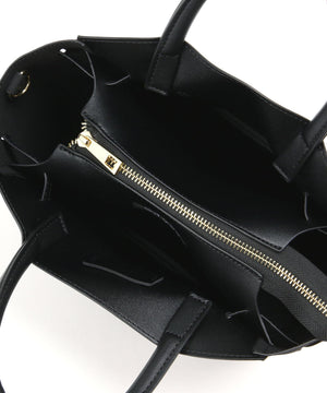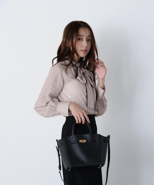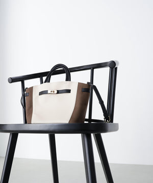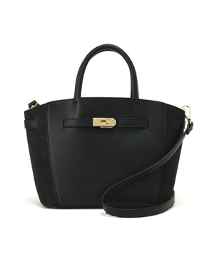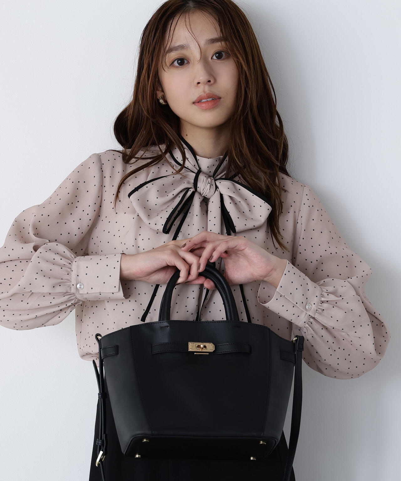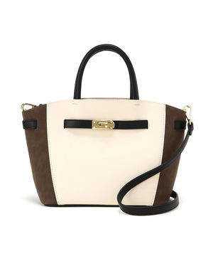 フロントのひねり金具がクラシックでフェミニンな印象のバケット型トートバッグです。ボディに今シーズントレンドの起毛感のある素材を取り入れたコンビネーションが特徴。中央はファスナー開閉で防犯面も安心のデザインです。前後2か所にポケットが付いているので、すぐに取り出したいスマートフォンや厚みのないちょっとした小物を入れるのにも便利です。ショルダーベルトも付属しているので、肩掛けやクロスボディ持ちもできます。