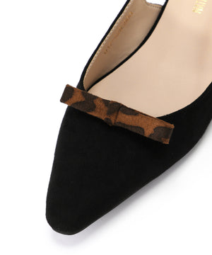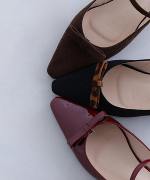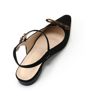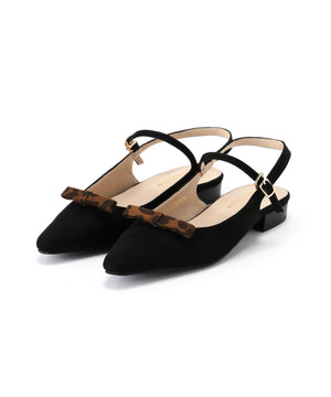 繊細な細リボンのシューズクリップが目を引く、バックストラップ付きのフラットサンダル。足元にさりげない甘さを添えつつ、安定感のあるはき心地を叶えてくれます。取り外しできるリボンチャームで、気分に合わせたアレンジも可能。デイリーはもちろん、ちょっとしたお出かけにもぴったり♪フラットソールなので歩きやすく、安心感があります。黒のアッパーにはトレンドのレオパード柄リボンでトレンド感をプラスしています。