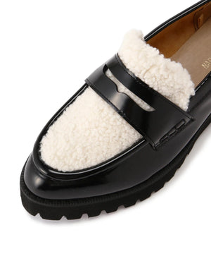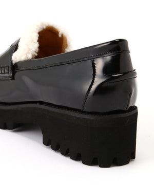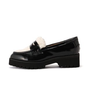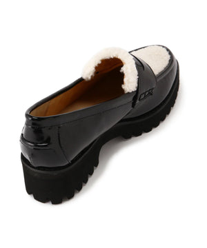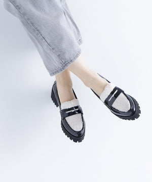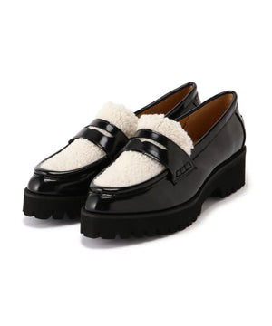 トレンドのボア素材をアッパーに配した、バイカラーのコンビローファーです。ボリュームのあるソール使いでスタイルアップが叶います。