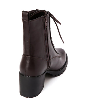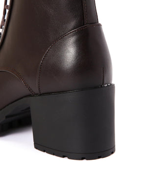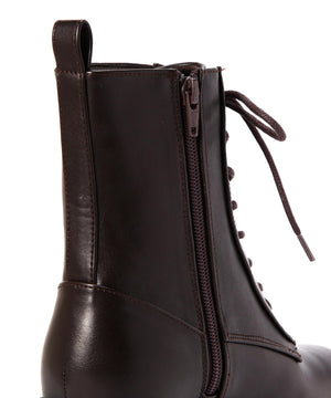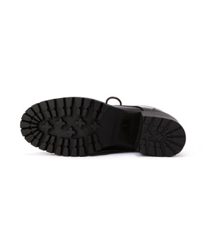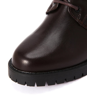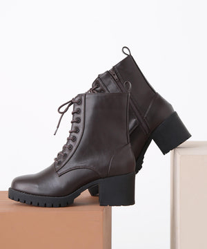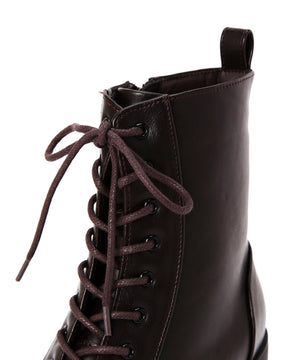 様々なボトムスの丈感とコーディネートしやすいレースアップブーツです。光沢感のあるヴィンテージライクな素材で、毛足感のあるスタイリングにも相性バツグン。ヒールの高さも程よくあり、カジュアルすぎず、スタイルアップも叶います。内側はファスナーが付いているので、立ったままでも着脱しやすい仕様に。底面には凹凸があるタンクソールを使い、足元の悪い天気でも滑りにくく安心。ライニングのクッション性や通気性も良い1足です。