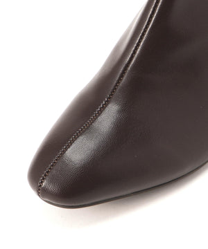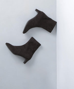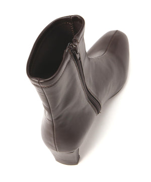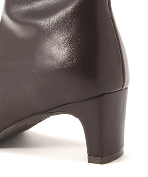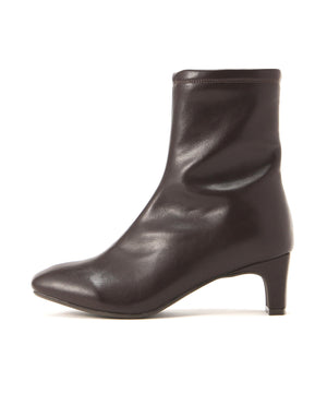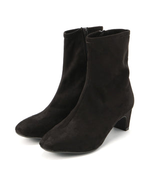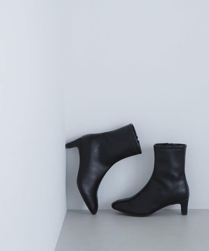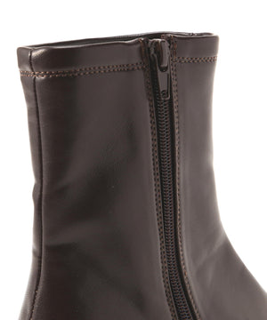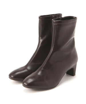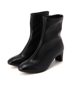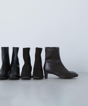 NBB定番!しっとりとした質感のフェイクレザーを使用したショート丈のストレッチブーツ。癖のないスクエアトゥと、どんなボトムスにも合わせやすい17センチの程よいレングスにも拘った1足。ライニングは弾力のあるジャージ素材を使用しており、足あたりが滑らかで靴擦れしにくい仕様に。また、サイドファスナーで着脱しやすさも嬉しいポイントです。