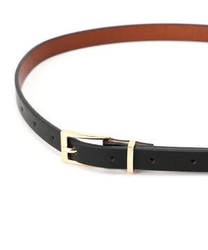 パンツスタイルやワンピースなどのウエストマークに使えるシンプルなベルト。クラシカルな素材感とメタルのループ金具がポイントです。コーディネートに取り入やすいベーシックなカラーを揃えています。