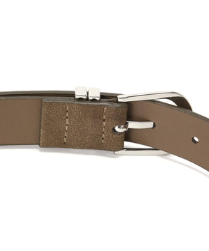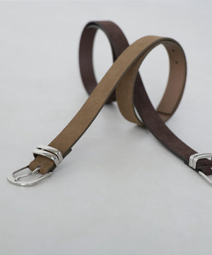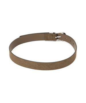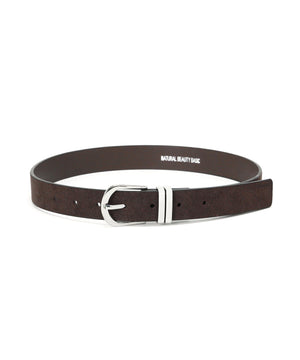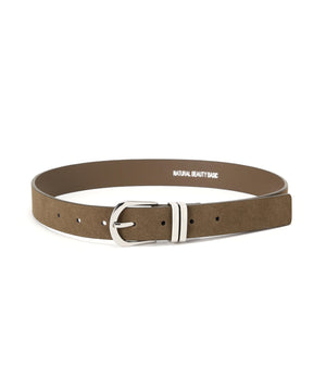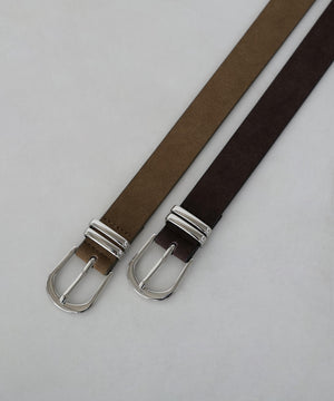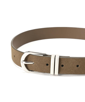 さり気なくウエスタンムード漂うスウェードタッチのベルトです。クローム調のバックルはカジュアル感があり、パンツのウエストベルトに活躍します。