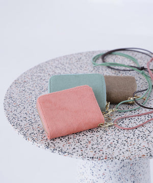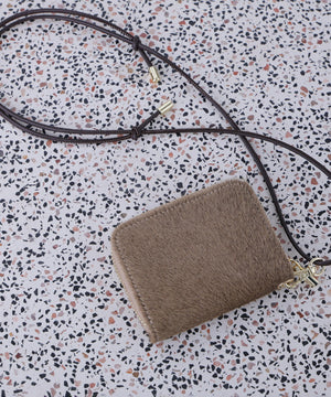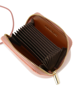 きれいな発色の本革ヘアカーフを使用したラウンドジップのアコーディオン型カードケースです。ファスナーを開けるとカード段が11層に分かれているので、中身が見やすくなっています。お札を折って入れたり、コインやICカードを入れるなど汎用性の高いアイテムです。また、取り外し可能なフリーアジャストのネックストラップがついているので、ハンズフリーになるのも嬉しいポイント。ホリデーシーズンのギフトにもピッタリなアイテムです。 ※こちらの商品は、天然の毛付き革を使用しております。そのため毛の色合いや毛並みの長さ・向きなどに個体差がございます。天然素材ならではの自然な風合い・質感をお楽しみいただける反面、毛の色味や小さなキズや毛の乱れが見られる場合がございます。これらは品質上の問題ではなく天然素材の証ですのでご理解のうえご購入ください。また、ヘアカーフは色落ちや色移りが起こりやすいデリケートな素材です。摩擦(特に汗や雨などで湿った状態での摩擦)により、他の衣料やバッグの裏地等に色移りすることがあります。ご使用時は色移り防止のため淡色の衣類との組み合わせにもご注意ください。