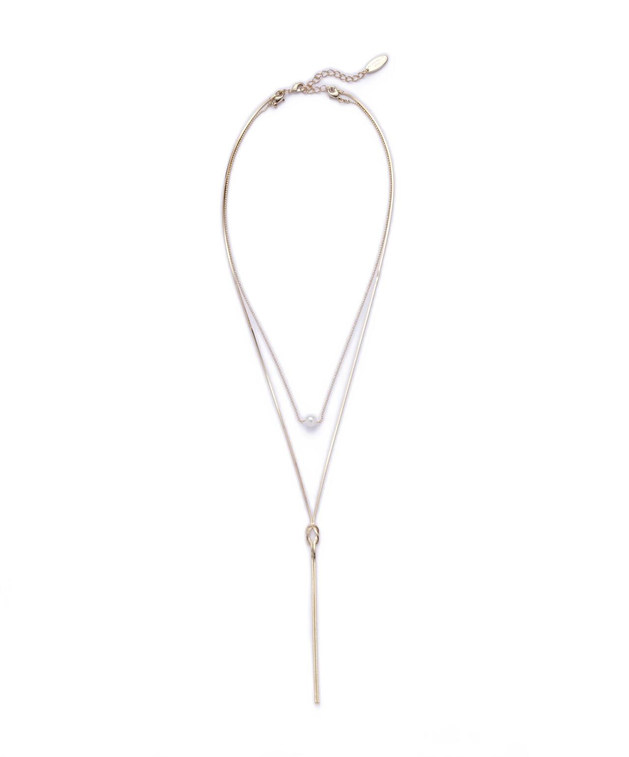 パール調とチェーンを結んだようなノットデザインがスタイリッシュな2連ネックレス。それぞれ取り外しが可能なため、シーンやコーディネートに合わせてお使いいただけます。シンプルなのでオフィススタイルのワンポイントアクセサリーとしてもおすすめのアイテムです。