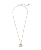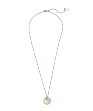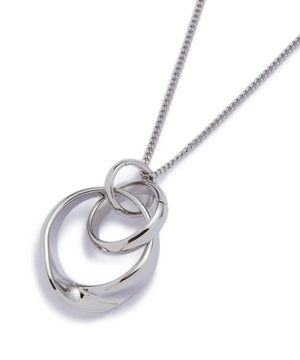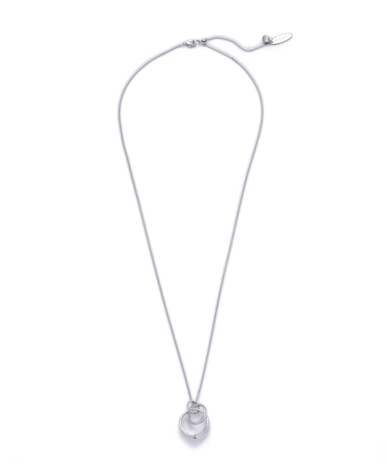 大・中・小と、大きさが異なるリングをトップにあしらったロングネックレス。シンプルな中にも女性らしいニュアンスを感じさせるデザインです。カジュアルからきれいめまでコーディネートを選ばず合わせやすいのもポイントです。フリーアジャスト仕様なので、お好みの長さに調節が可能です。