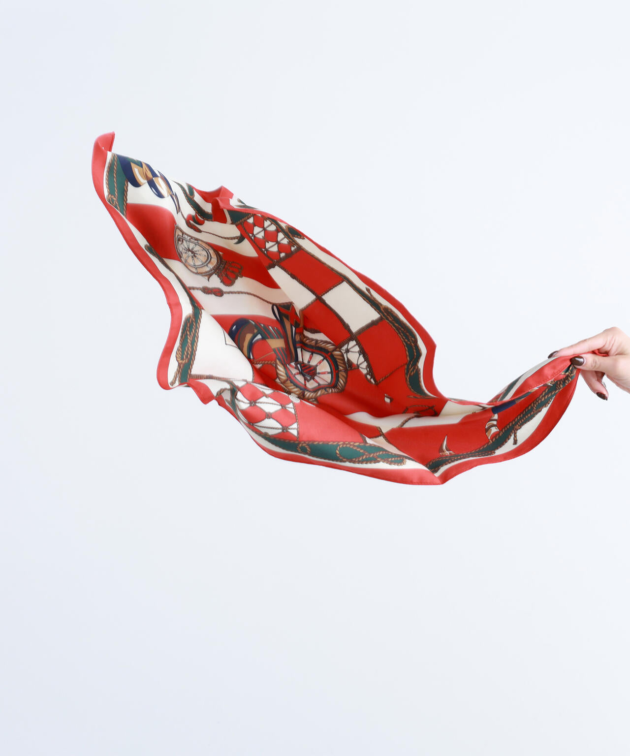 イタリアンな雰囲気で90年代のヴィンテージ感が漂うスカーフ。今年らしいカラーリングがポイント。ニットの首元に結んだり、ヘアアクセサリーとしてやバッグチャームなどに取り入れるなど、アレンジ次第でオールマイティーに活躍する便利なアイテムです。