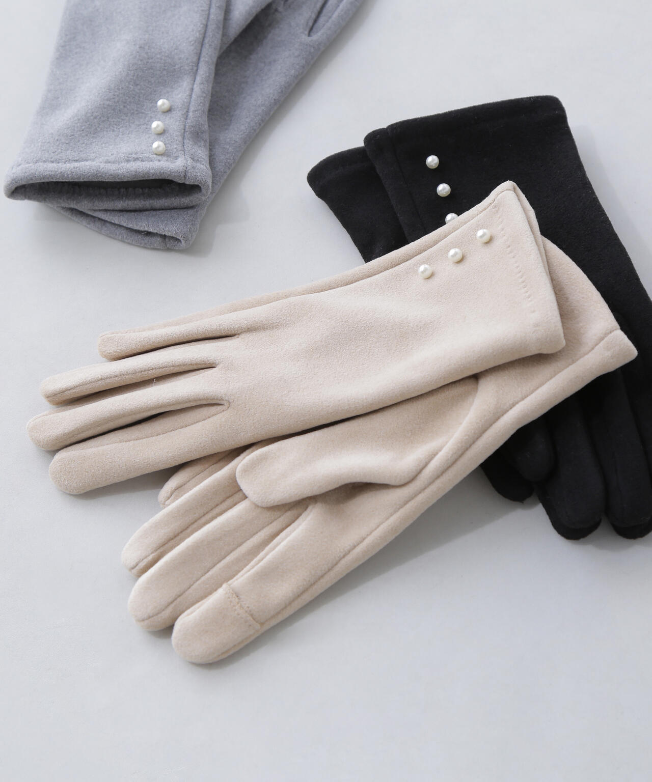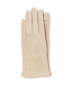 手首にあしらったパール調が袖口からさりげなくのぞくグローブ。シンプルなデザインなのでコーディネートを選ばずに使えます。人差し指にスリットが入っているため、スマートフォンなどタッチパネルの操作がしやすいのも嬉しいポイントです。