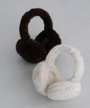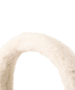 耳あて部分をカチューシャのほうに倒すとコンパクトになるイヤマフです。とてもリアルで手触りの良いフェイクミンクファーを使用しているので、高級感あふれる見え方に。コンパクトにまとめると持ち運びにも便利です。バッグのハンドルにつけていただくと、バッグチャームのように使えます。