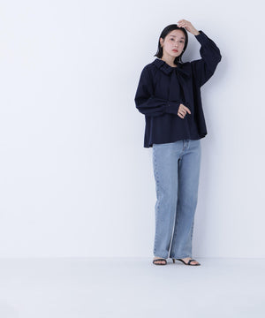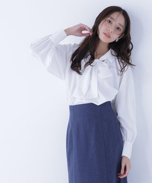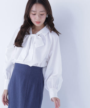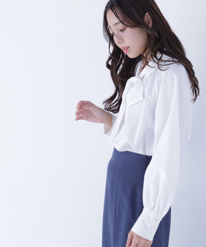 スキッパーリボンタイブラウス