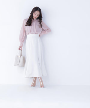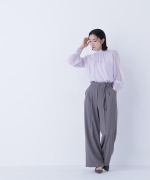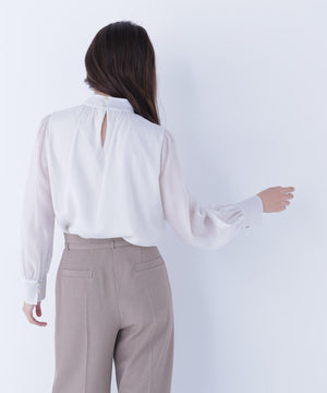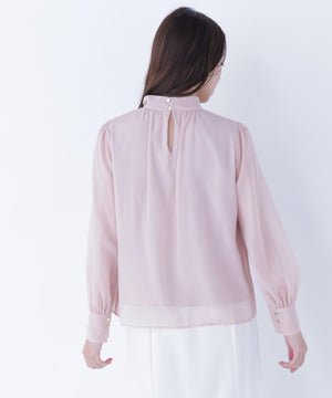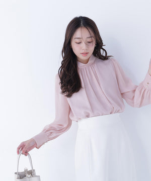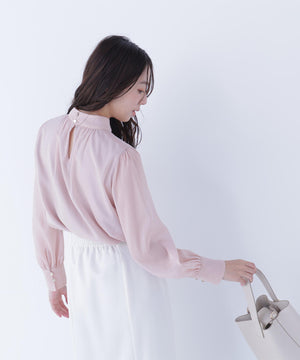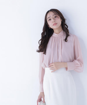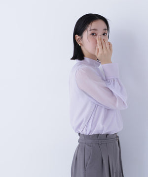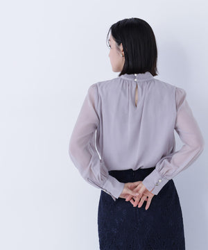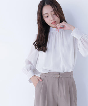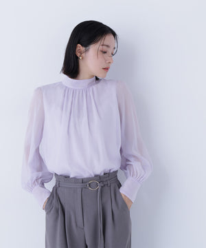 ハイネックボリュームシアーブラウス